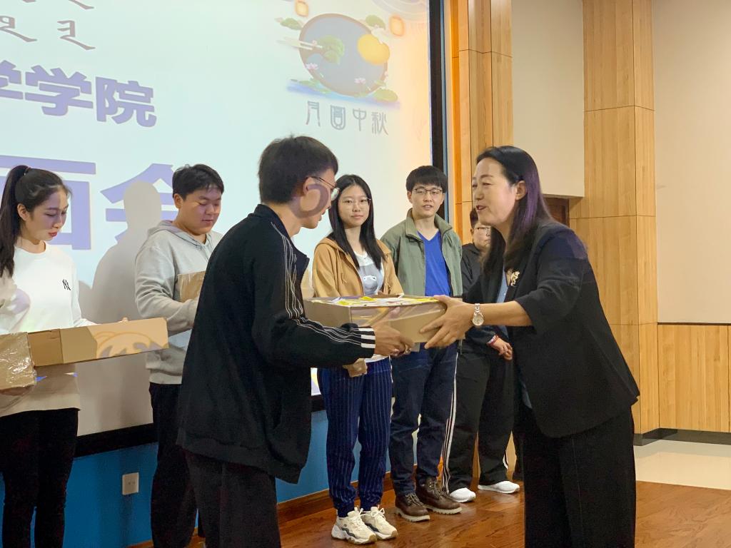 首先,全体起立奏唱国歌。接着,学院党委书记包凤兰教授致辞并鼓励同学们好好学习专业知识并介绍了学院的整体情况。其次,学院党委书记向盛乐校区全体学生送上学院中秋节问候和节日的礼物。最后,集体奏唱校歌,浓厚的节日氛围中师生面会圆满落幕。