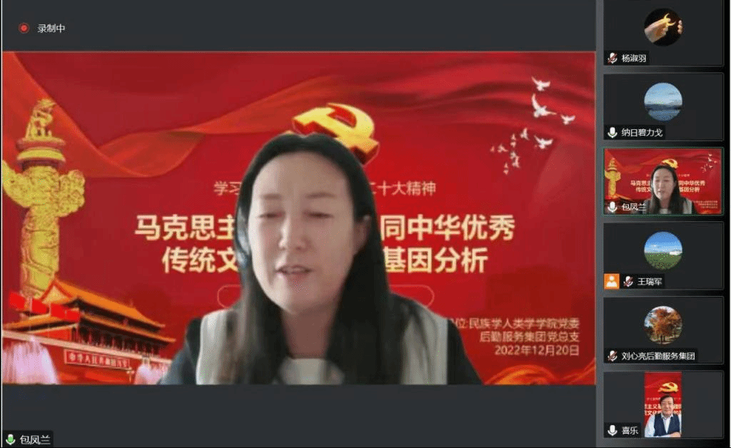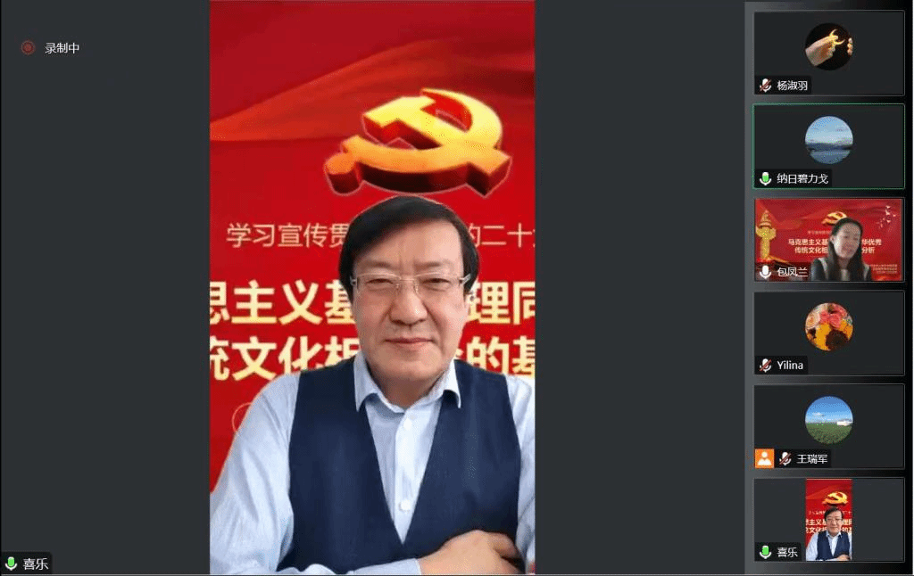 12月20日下午,我院党委联合后勤服务集团党总支,邀请校党委委员、副校长王来喜教授,做“马克思主义基本原理同中华优秀传统文化相结合的基因分析”为题目的二十大精神线上辅导讲座。讲座由AC米兰官网党委书记包凤兰主持,学院师生党员及后勤服务集团环节干部、党员及积极分子200多人线上聆听讲座。