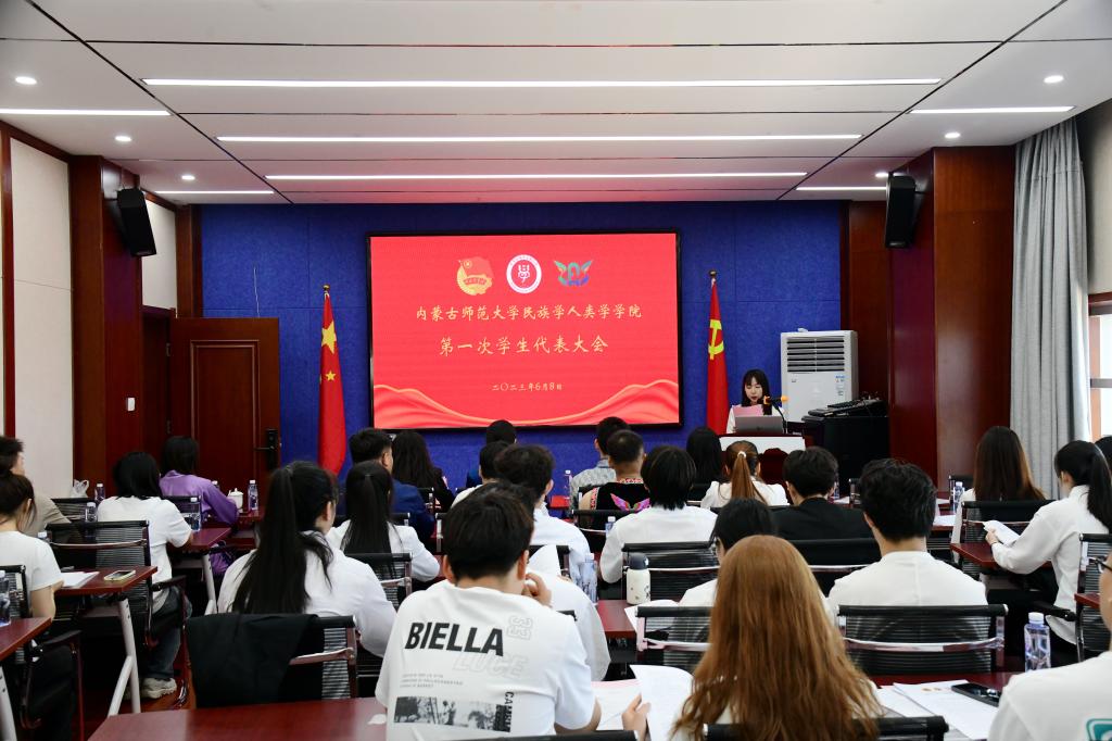 本次代表大会由AC米兰官网团总支书记姜鑫老师主持,AC米兰官网党委书记包凤兰及各班学生代表50余人参与会议。在宣布大会正式开始后,全体师生起立共唱国歌,姜鑫老师在开幕致辞中明确提出本次会议精神,声明学生干部应当明确自身职责,积极投入到建设学院的队伍中去,进行自我监督、自我管理。