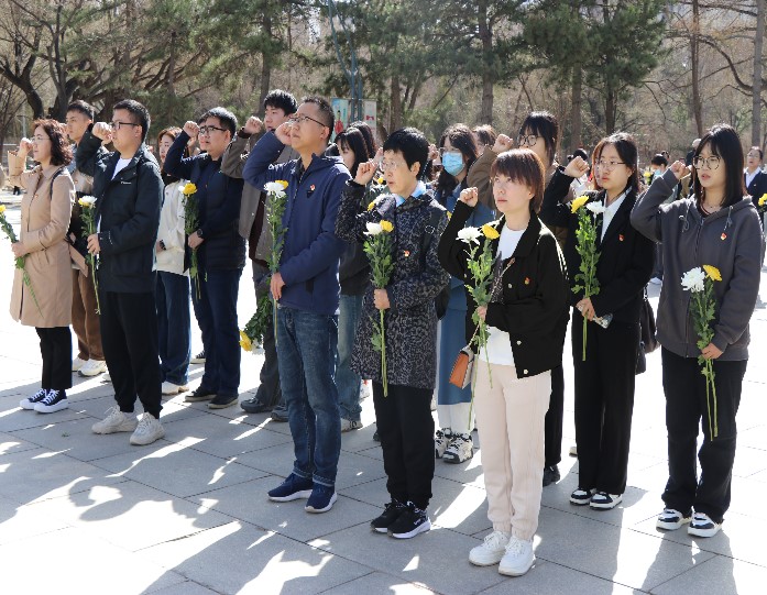党委副书记副院长陆一琼在烈士纪念碑前发表讲话。她回顾了烈士们的英勇事迹,号召大家要铭记历史、缅怀英烈、珍惜和平,继承和发扬革命先烈坚韧不拔、英勇不屈的革命精神,在本职岗位上主动担当作为,为建设美好祖国贡献自己的力量。讲话结束后,陆一琼书记带领全体党员师生重温入党誓词。