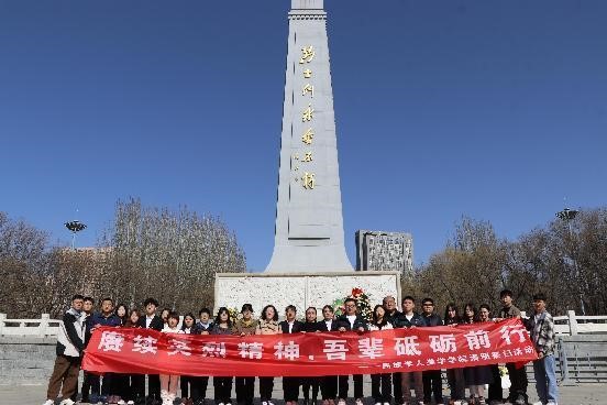 习近平总书记指出:“我们要在全社会树立崇尚英雄、缅怀先烈的良好风尚。对为国牺牲、为民牺牲的英雄烈士,我们要永远怀念他们,给予他们极大的荣誉和敬仰,不然谁愿意为国家和人民牺牲呢?”为深入贯彻落实习近平总书记重要指示精神,4月2日上午,在党委副书记副院长陆一琼的带领下,AC米兰中文官方网站师生党员代表赴呼和浩特市青城公园英雄纪念碑开展“清明”祭扫活动,缅怀先烈,寄托哀思。