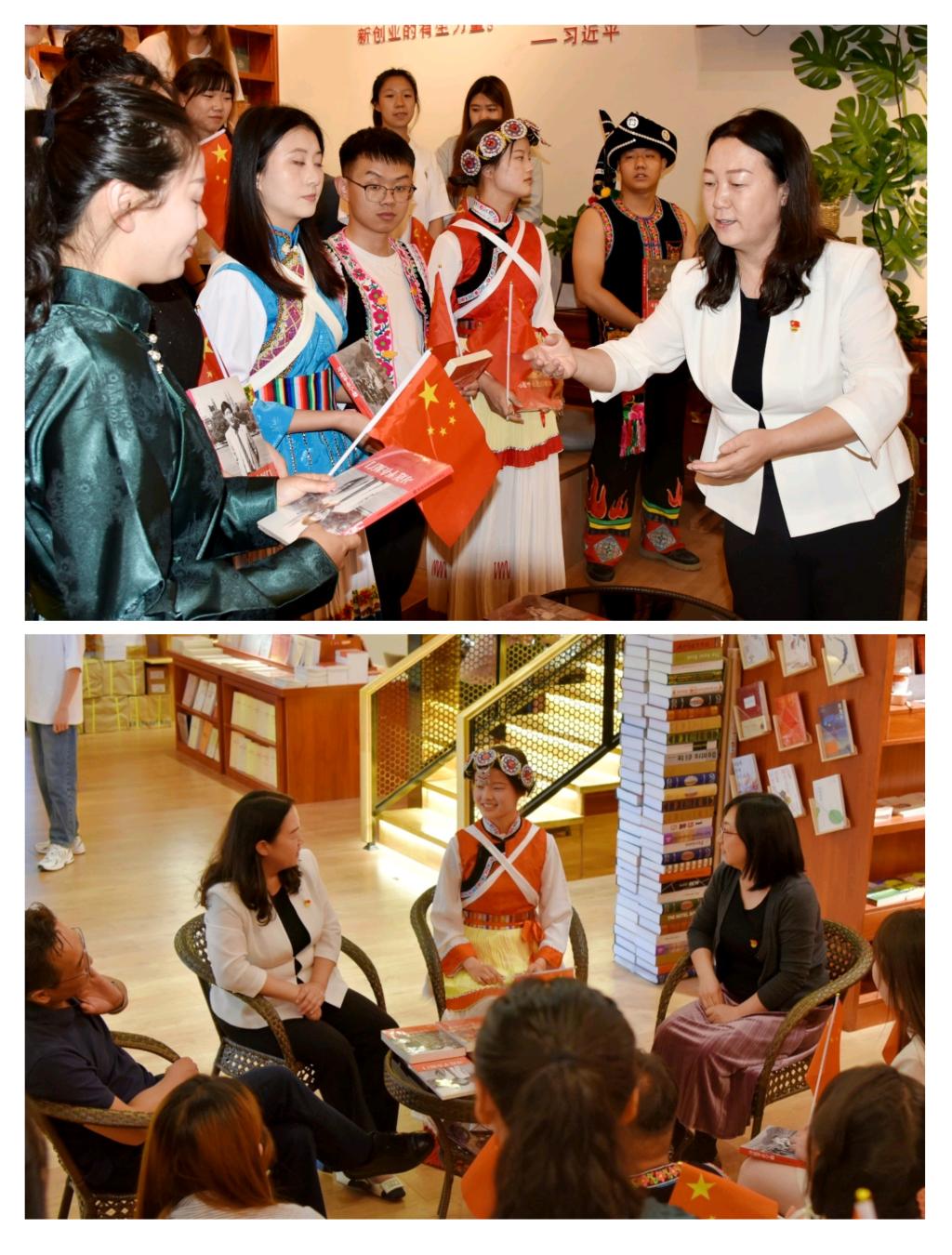 为深入学习贯彻习近平总书记关于加强和改进民族工作的重要思想,加强各民族同学之间的交流与理解,共同促进和谐校园的繁荣发展,AC米兰官网于5月31日在赛罕校区新华书店举办了“民族团结一家亲,共筑美好未来梦”交流会,学院党委书记包凤兰、副书记副院长陆一琼、副院长满达、团总支书记姜鑫出席座谈会。