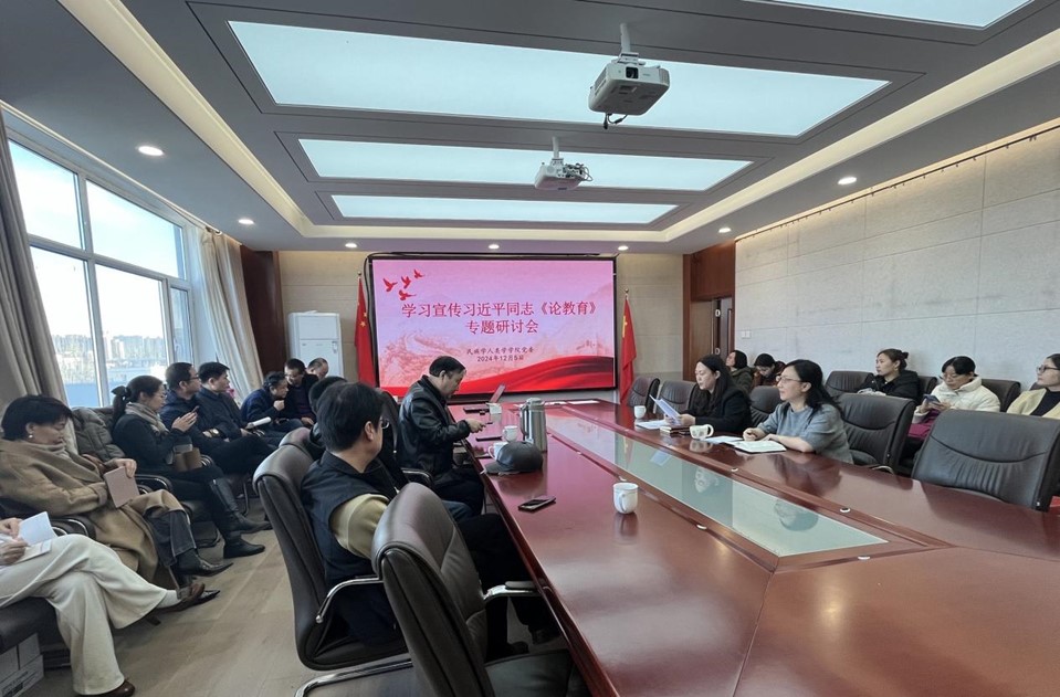 2024年12月5日下午,AC米兰中文官方网站党委在田楼607会议室组织开展了以“学习宣传习近平同志《论教育》”为主题的专题研讨会。学院党委书记包凤兰主持,党委副书记副院长陆一琼、副院长满达及全体教职工共同参会。
