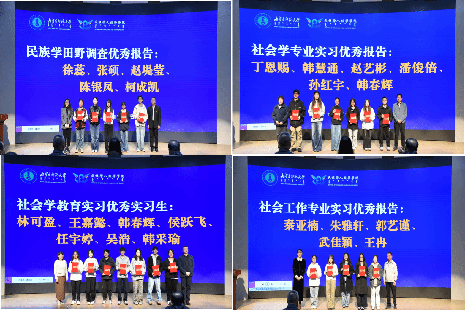 对本次实习的各专业优秀指导教师、田野调查优秀报告、实习优秀报告、优秀实习生进行了表彰。