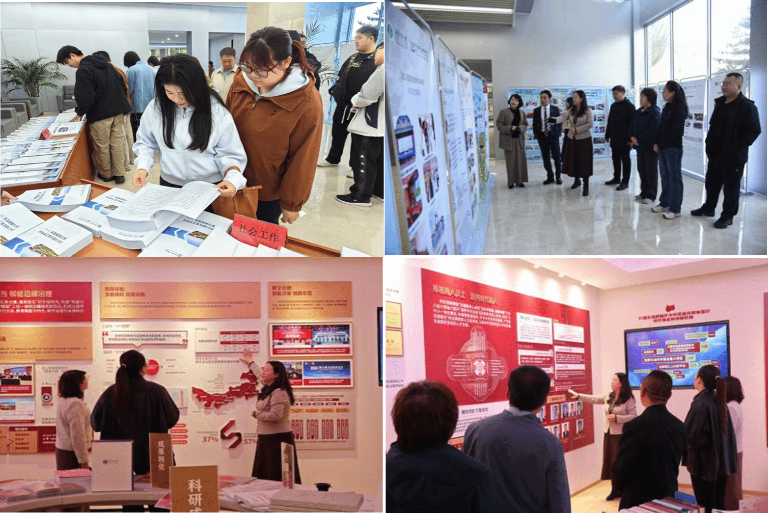 会后,学院领导与各实习基地负责人共同参观实习成果展板、总结报告,并参观了学校国家民委中华民族共同体研究基地。