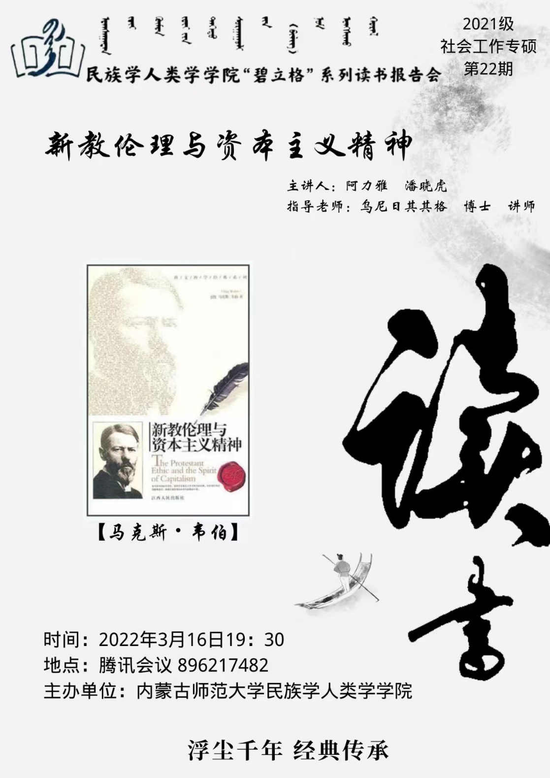 AC米兰中文官方网站“碧立格”系列读书报告会预告 2021级社会工作硕士研究生第22期