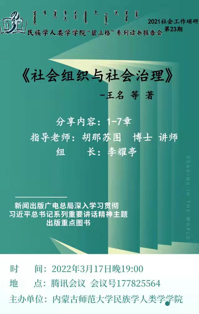 AC米兰中文官方网站“碧立格”系列读书报告会预告 2021级社会工作硕士研究生第23期