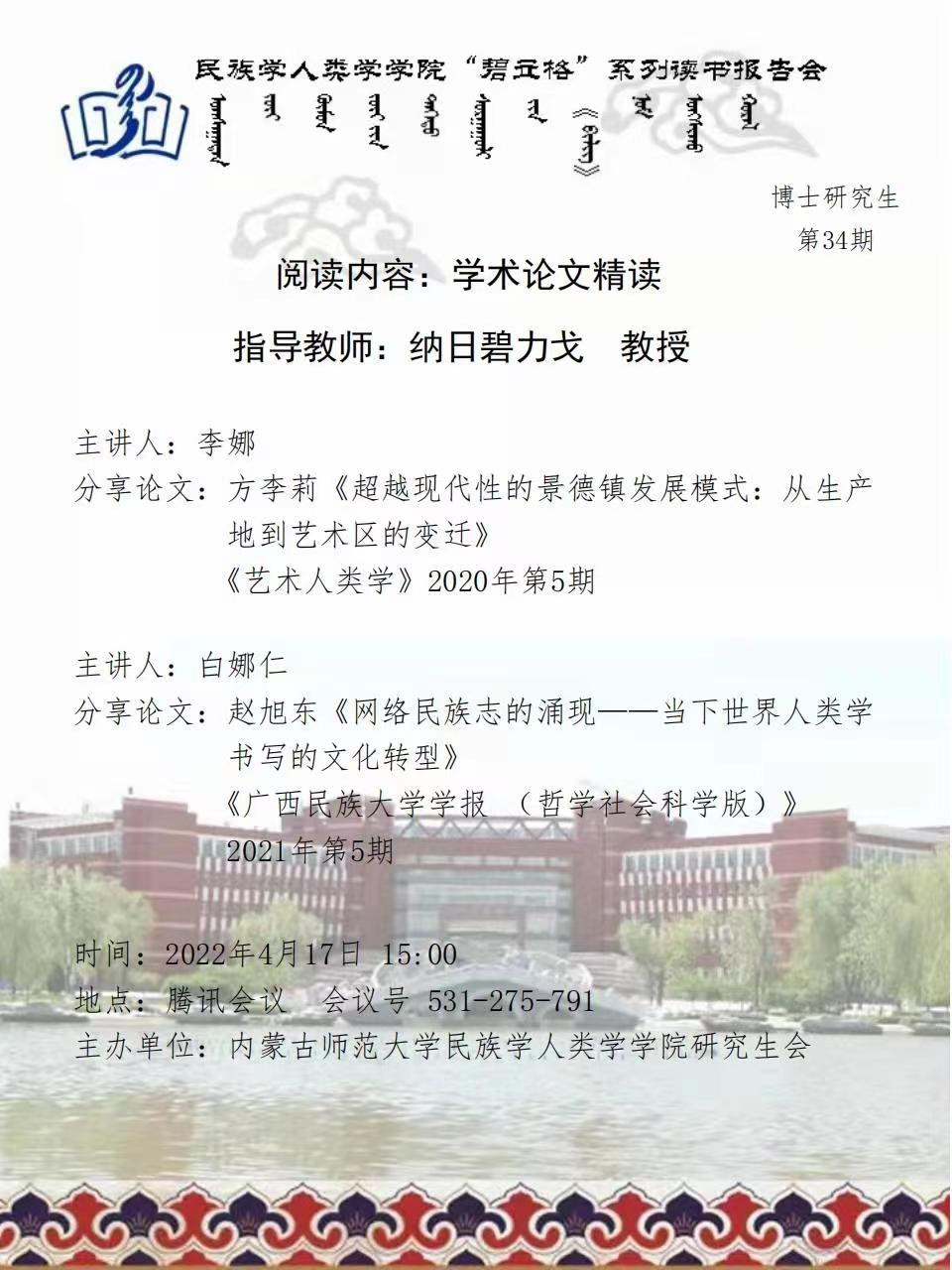 主讲人:李娜 白娜仁 2021民族学博士研究生