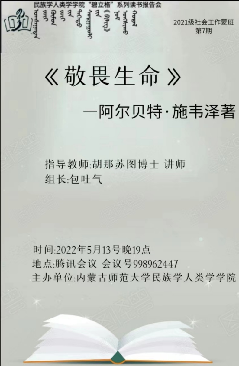 AC米兰中文官方网站“碧立格”系列读书报告会预告 2021级社会工作蒙班第7期