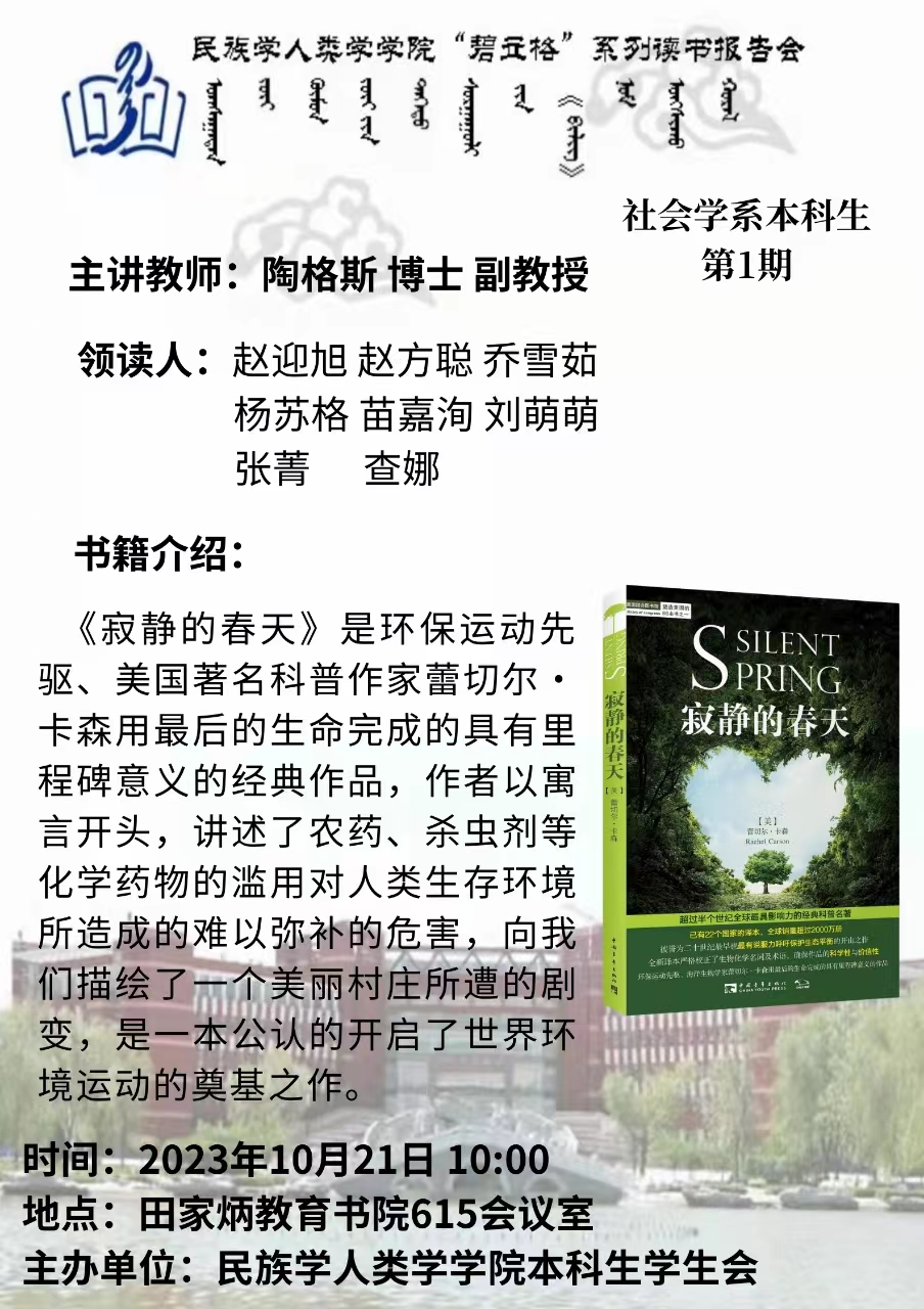 AC米兰中文官方网站“碧立格”系列读书报告会预告 本科生第1期