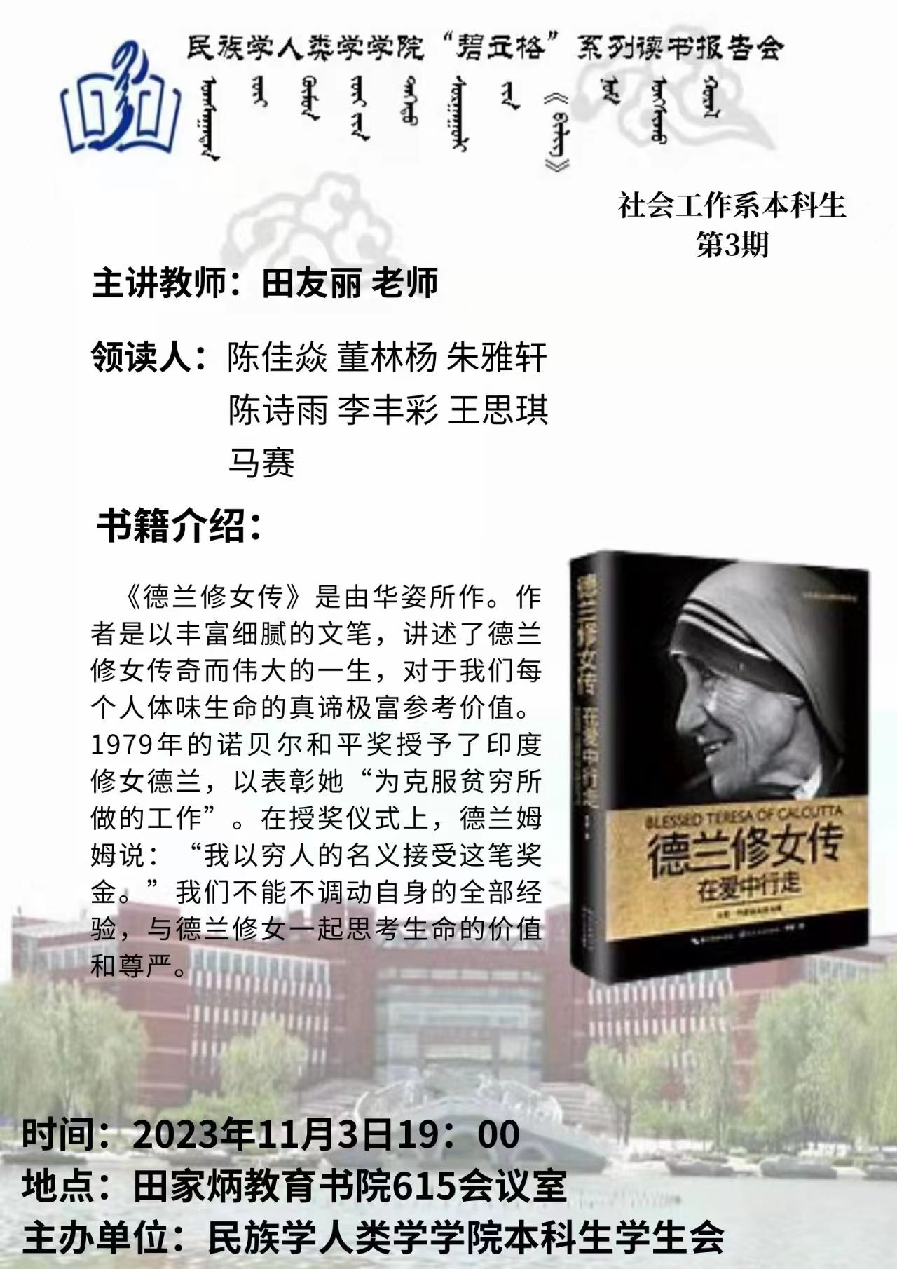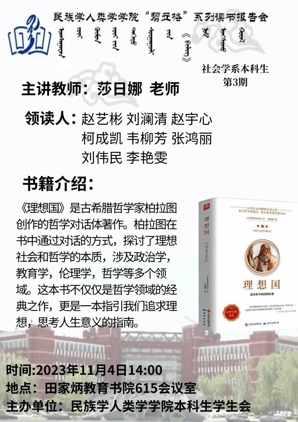 AC米兰中文官方网站“碧立格”系列读书报告会预告 本科生第3期
