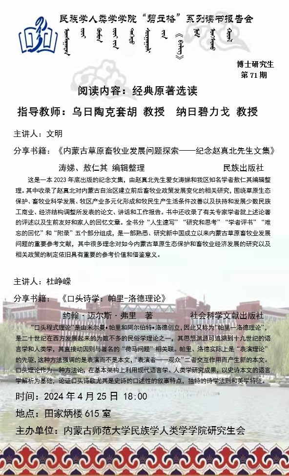 AC米兰中文官方网站“碧立格”系列读书报告会预告博士研究生第71期