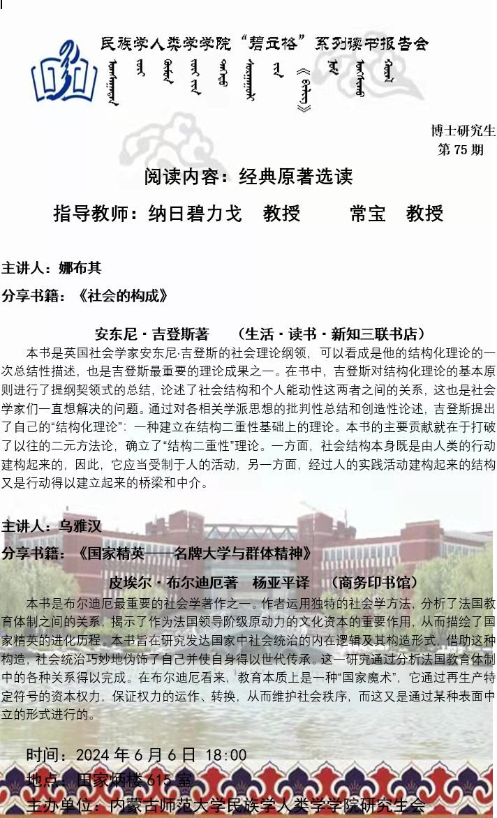 AC米兰中文官方网站“碧立格”系列读书报告会预告博士研究生第75期