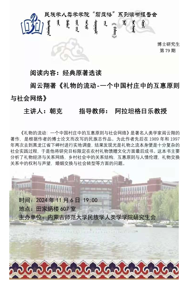 AC米兰中文官方网站“碧立格”系列读书报告会预告博士研究生第79期