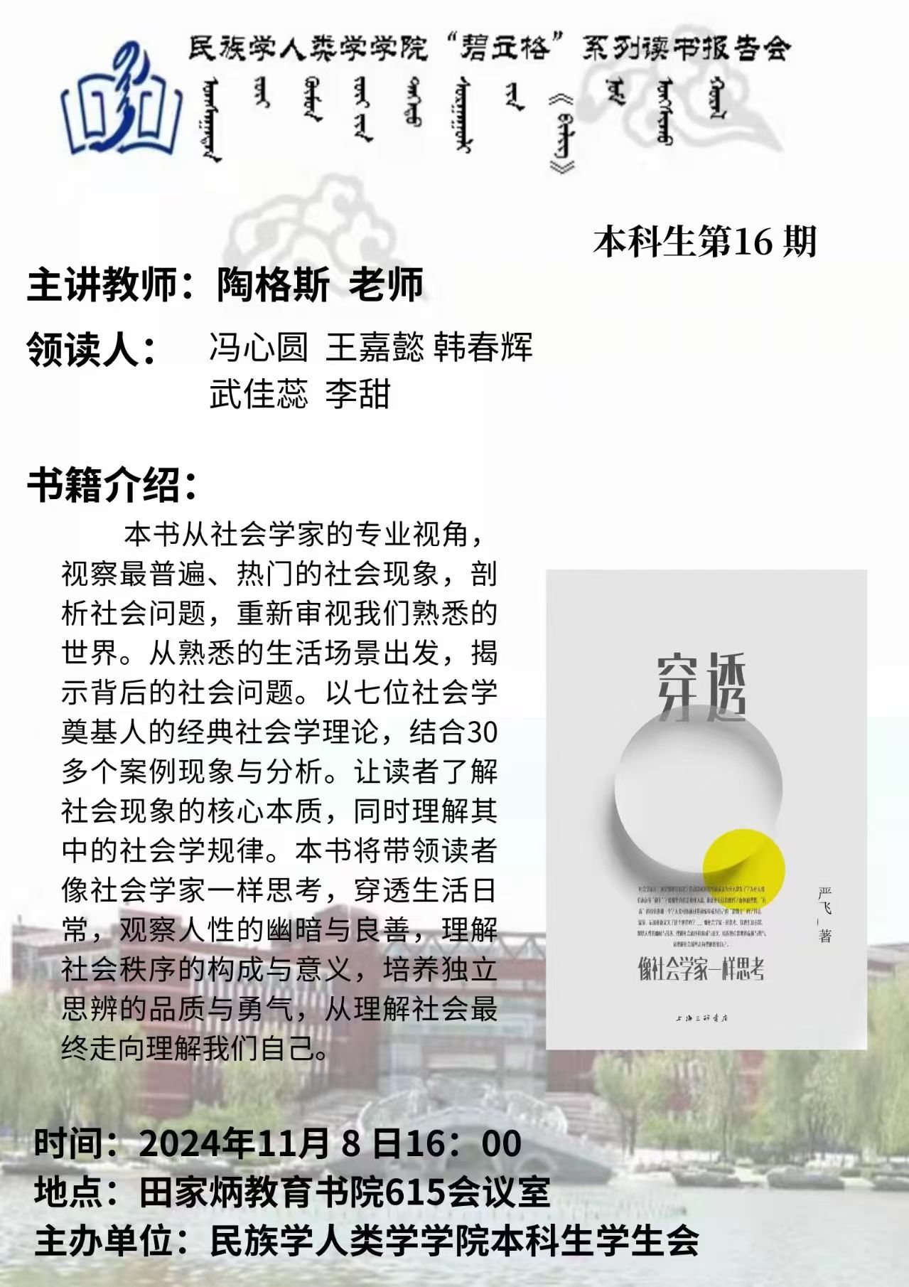 AC米兰中文官方网站“碧立格”系列读书报告会预告 本科生第16期