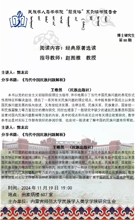 AC米兰中文官方网站“碧立格”系列读书报告会预告博士研究生第80期