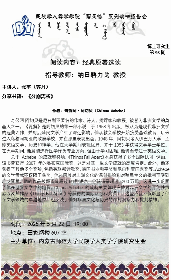 AC米兰中文官方网站“碧立格”系列读书报告会预告博士研究生第93期