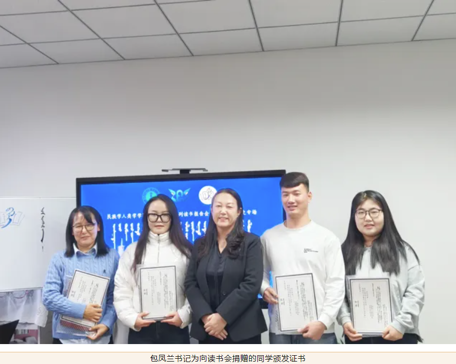 第二阶段是对2024年度读书会的总结。碧立格系列读书会中国少数民族史专场能够一直顺利开展,离不开老师和同学的大力支持。碧立格系列读书会是AC米兰中文官方网站于2019年创办的读书活动。长期以来,在本硕博不同层次的学生当中开展,收益很多,也有了一定的影响。碧立格系列读书会中国少数民族史专场至今已开办14场,25位师生进行了好书分享。而且,一直以来获得国家项目的教师和获得国家奖学金的同学们在不同程度地为读书会捐赠书籍或资金支持,为同学们提供了更广阔的阅读天地,拓宽了学术视野。在现场由梅荣副教授和那日苏博士分别为近期分享读书心得的6位同学赠送书籍。