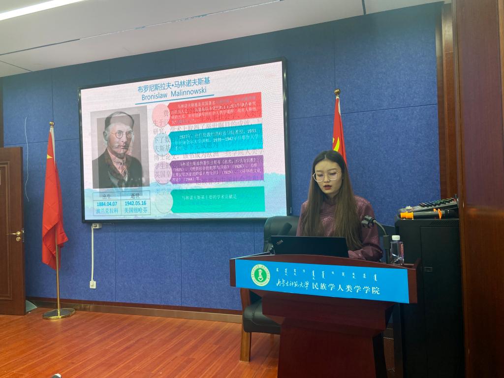 本次读书报告会的主讲人是2020级民族学一班的包雅茹同学。她将本次报告的内容分为了作者简介、本书内容分析及感想感悟三个模块。在简要介绍了作者生平和写作背景后,包雅茹同学着重讲解了本书的内容及感想,并对“文化”、“功能主义人类学”等概念做了详细地解释。之后,同学们积极分享读完本书后的所思所想,并向老师询问了一些自己的问题。