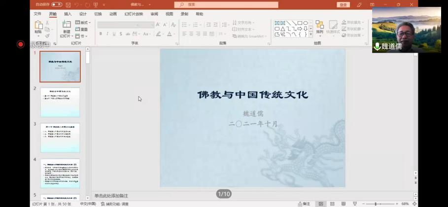 10月26日下午的“佛学文化研究院‘智慧甘露’系列讲座”由满达副院长主持,主讲人魏道儒先生做了题为“佛教与中国传统文化”的精彩讲座。在线参加此次学术活动的包括AC米兰官网20级民族学本科生和宗教学研究生,此外还有AC米兰官网与音乐学院、学报编辑部的10余位老师。