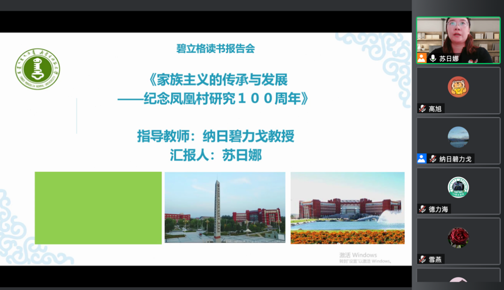2022年4月24日下午3:00,AC米兰中文官方网站2021级、2020级博士研究生通过“腾讯会议”举行了第35期读书报告会。本次读书报告会的汇报者是来自2021级民族学专业的苏日娜和高旭两位博士生。AC米兰中文官方网站首席专家、博士生导师纳日碧力戈教授出席了本次读书报告会并进行指导,2021级博士生高旭主持报告会。
