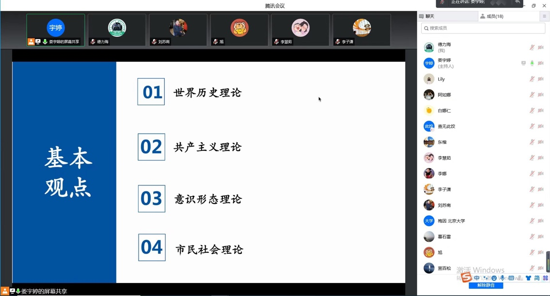 读书报告会共分为两个环节:第一环节为主讲人分享了阅读书目:马克思、恩格斯《德意志意识形态》的写作背景、主要内容、文本结构、理论主题、基本观点、当代意义进行了较详尽地介绍,并分享了学习心得。