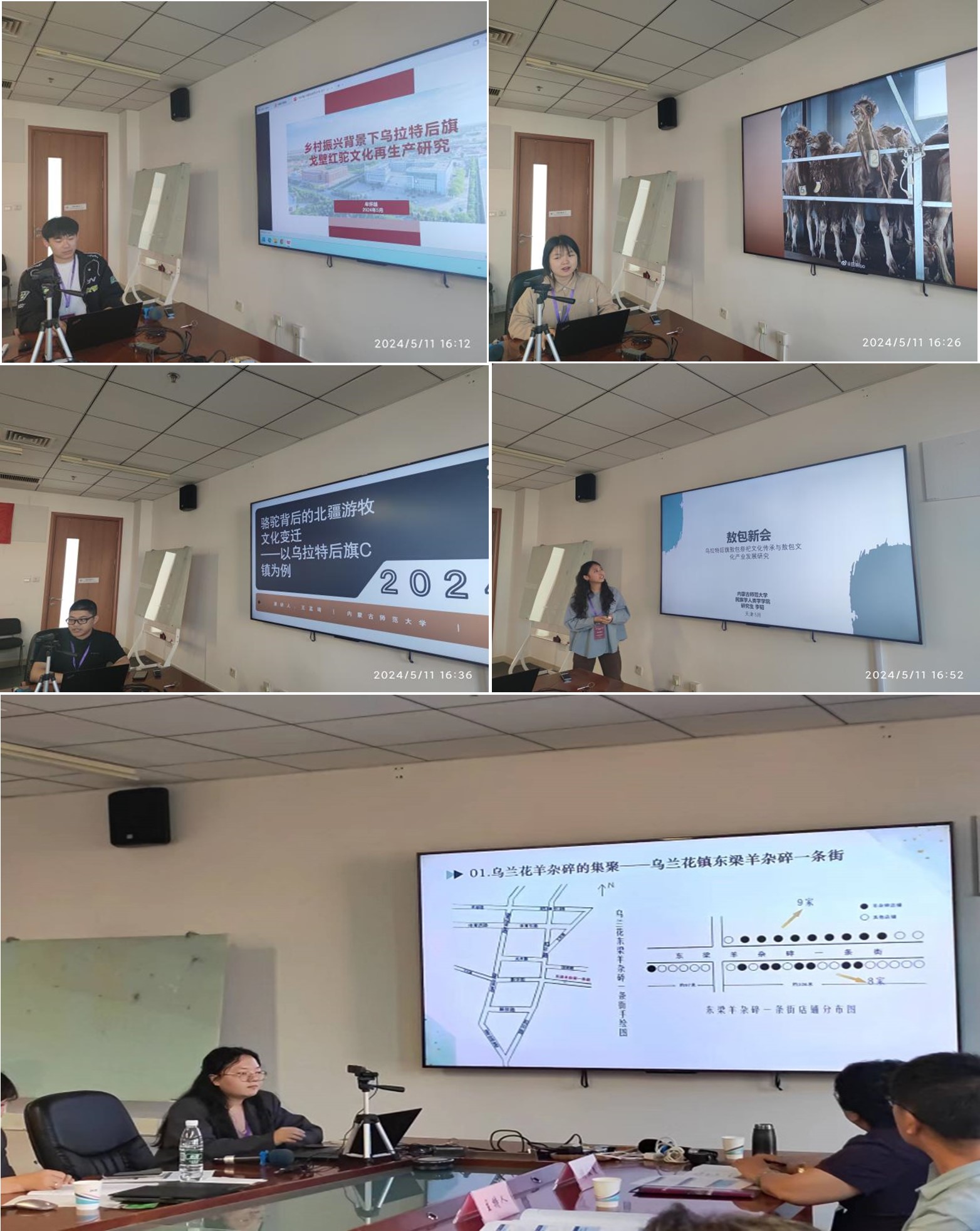 AC米兰官网乌日格木乐老师带领牟怀超、张圣杰、王孟琦、李韬、杨淑羽等5名硕士研究生参加会议,分别以“乡村振兴背景下乌拉特后旗戈壁红驼文化再生产研究”、“驼乳策力:乡村振兴背景下乌拉特后旗驼奶产业生产模式探究”、“骆驼背后的北疆游牧文化变迁—以乌拉特后旗c镇为例”、“敖包新会:乌拉特后旗敖包祭祀文化传承与敖包文化产业”、“‘晋风蒙韵’饮食人类学视角下的乌兰花羊杂碎”为题做学术报告,赢得了与会老师们的高度认可,获得了广泛好评。